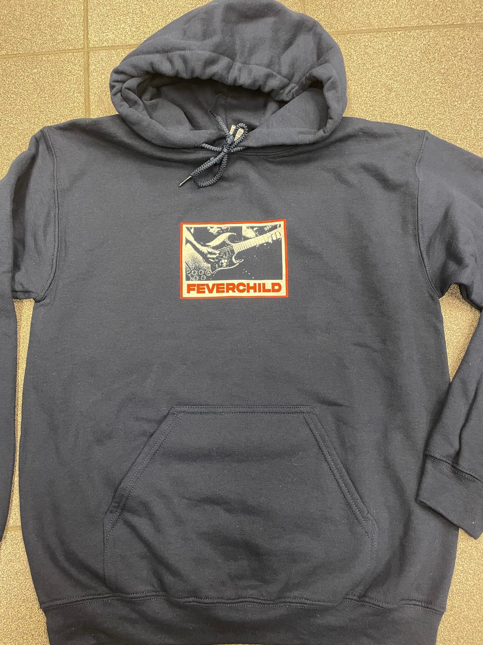 White and red design on navy Gildan hoodies